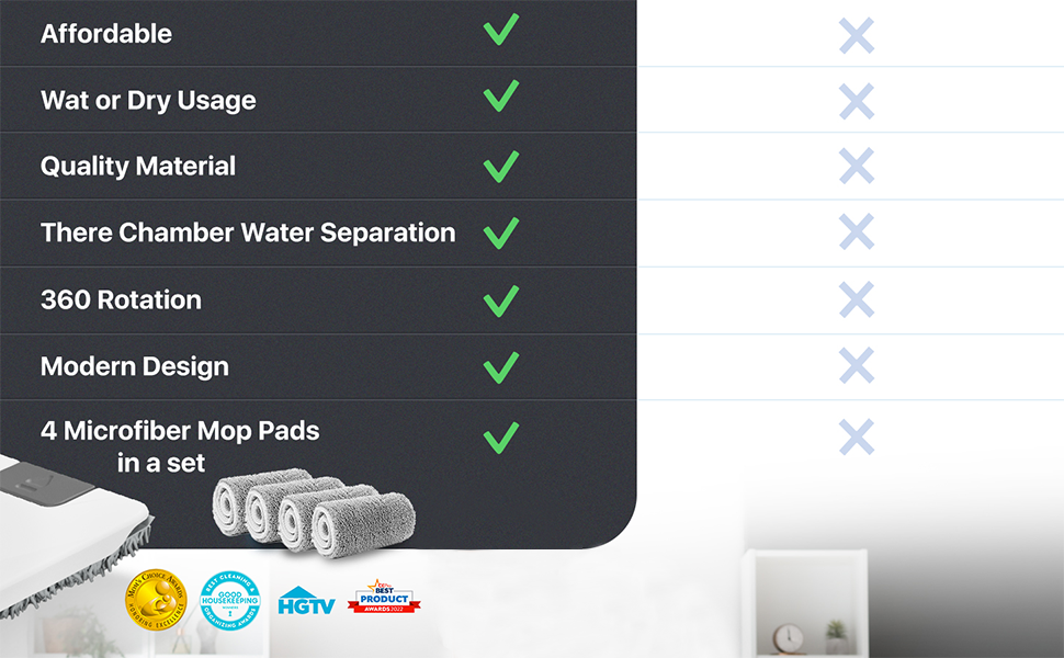 - REVOLUTIONARY WATER SEPARATION SYSTEM: Experience the first-ever mop designed to keep clean and dirty water separate! This unique feature ensures that you're always cleaning with fresh water, avoiding the spreading of dirt and grime. Say hello to a truly effective cleaning experience!
